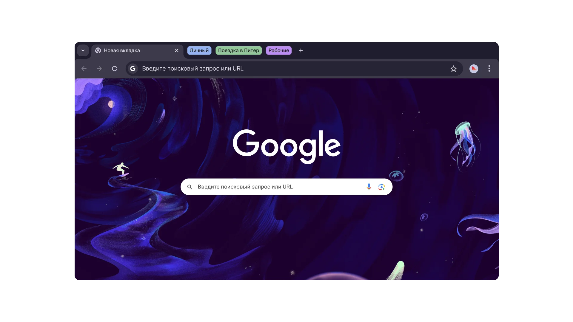 Персонализируйте веб-браузер, выбрав вариант оформления, светлую или тёмную тему и другие параметры.